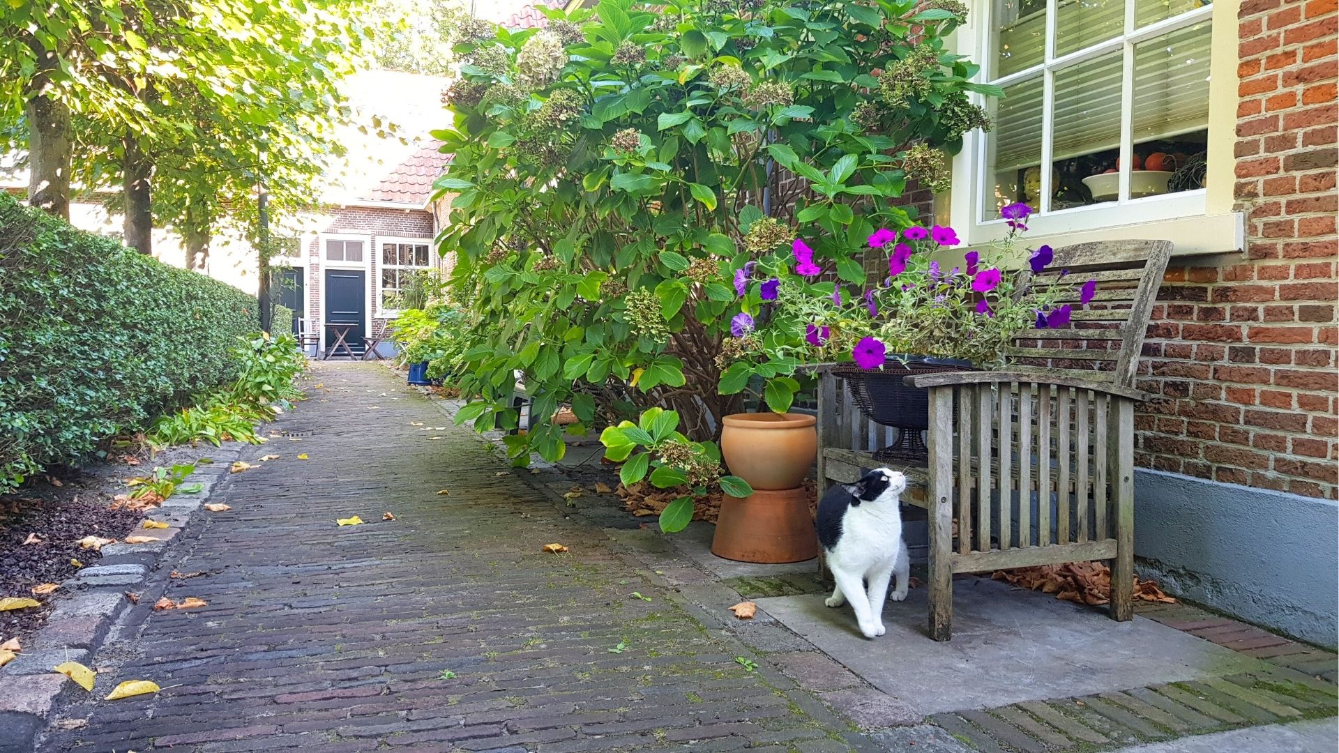 De hofjes liggen vaak verborgen in het straatbeeld. Een smalle doorgang, een bescheiden deur of een poort zonder opschrift — en ineens opent zich een groene binnenruimte, omgeven door kleine huisjes.